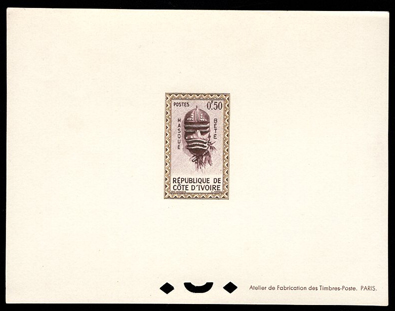 IVORY COAST (1976) Baoulé mask*. Deluxe sheet. Scott No 404, Yvert No 399.