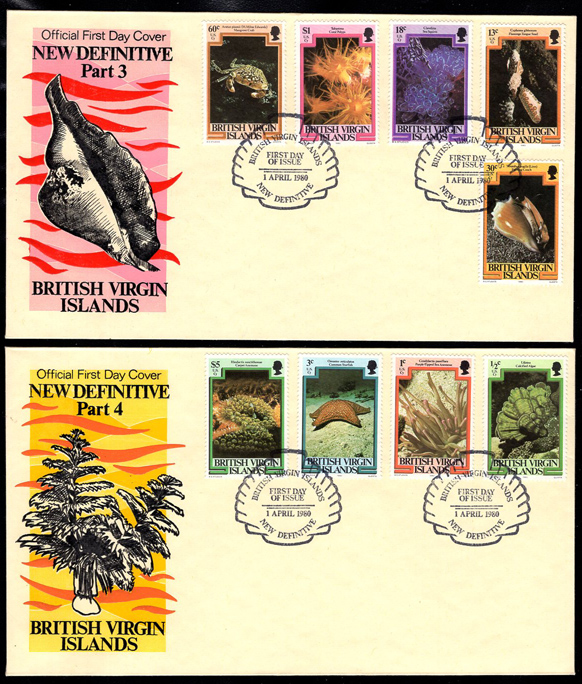 BRITISH VIRGIN ISLANDS (1979) Marine life. Set of 4 unaddressed FDCs with cachet. Scott Nos 364-80.