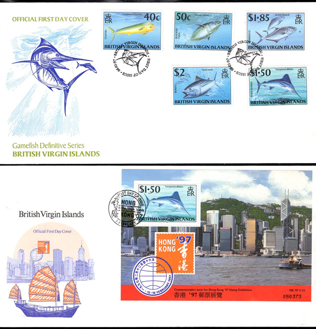 BRITISH VIRGIN ISLANDS (1997) Game fish. Hong Kong 97 exhibition Set of 4 unaddressed FDCs with cachet. Scott Nos 847-61..