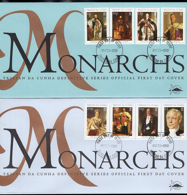TRISTAN DA CUNHA (2000) Monarchs. Set of 3 unaddressed FDCs with cachet. Scott Nos 647-58.