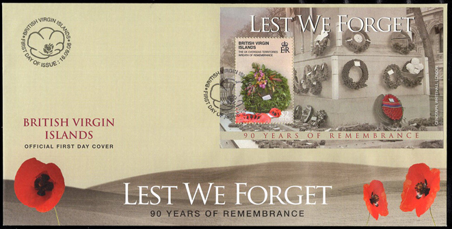 BRITISH VIRGIN ISLANDS (2008) WWII Memorial. Set of 3 unaddressed FDCs with cachet. Scott Nos 1094-1100.