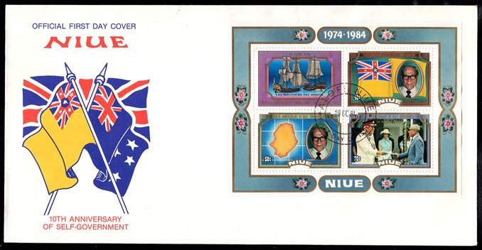 NIUE (1984) 10th anniversary of self-government. Set of 3 unaddressed FDCs with cachet. Scott No 441-4.
