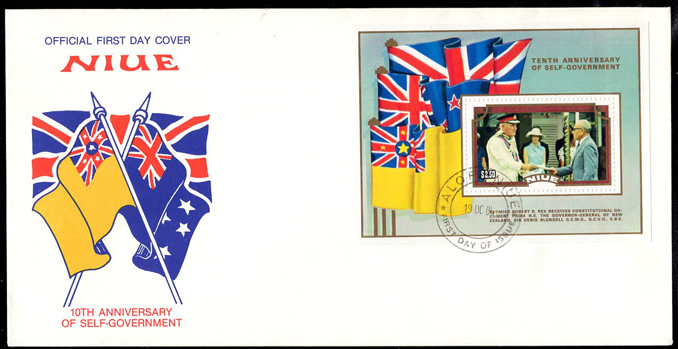 NIUE (1999) 25 years of self-government. Unaddressed FDC with cachet and thematic cancel. Scott No 740.