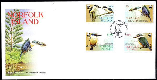 NORFOLK ISLAND (2004) Birds. WWF emblem. Unaddressed FDC with cachet and thematic cancel. Scott No 832-5.