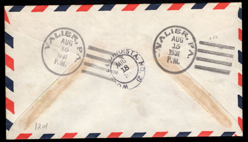 U.S.A. (1931) Hand pointing. Fancy cancel from Valier, Pennsylvania. Seven strikes in black on registered envelope. A most unusual and attractive cancel!