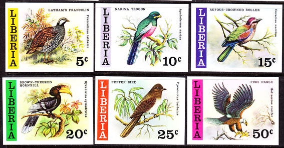 LIBERIA (1953) Various birds. Set of 6 imperforates. Scott Nos 341-6, Yvert Nos 318-23.