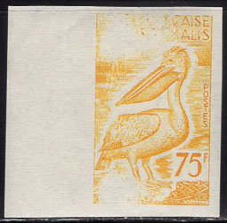 SOMALI COAST (1960) Pink-backed pelican*. Trial color proof. Scott No 286, Yvert No 300.