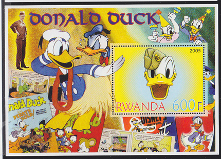 RWANDA (2005) Donald Duck. Souvenir sheet. Not listed in Scott.