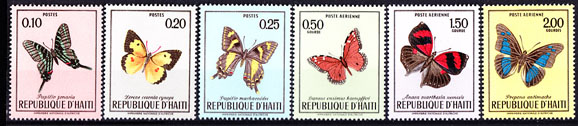 HAITI (1969) Buttterflies*. Set of 6. Scott Nos 625-7,C348-50. Yvert Nos 651-3,PA430-2. **.