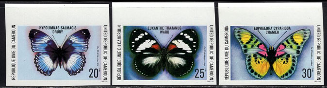 CAMEROUN (1978) Butterflies*. Set of 3 imperforates. Scott Nos 644-6, Yvert Nos 624-6.