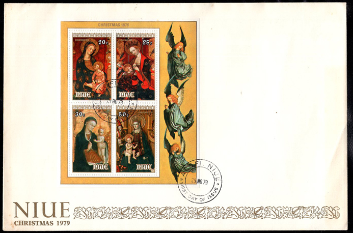 NIUE (1972) Madonna & Child by Murillo. Unaddressed FDC with cachet. Scott No 155.