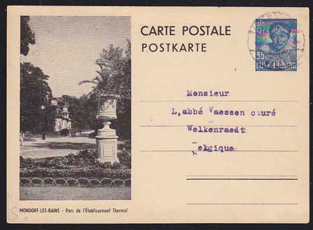 LUXEMBOURG (1938) Thermal baths at Mondorf-Les-Bains*. 35c postal card (O) with corner illustration.