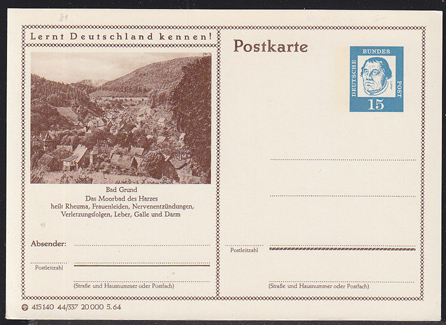 GERMANY (1964) Health spa in Bad Grund*. Postal card (N) with corner illustration.
