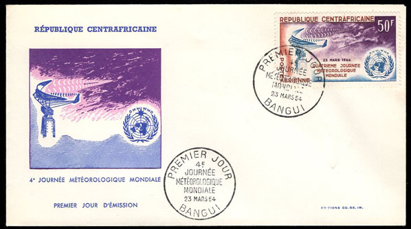 CENTRAL AFRICAN REPUBLIC (1973) Weather Map*. WMO Emblem*. Unaddressed FDC with cachet. Centenary of International Meteorology Cooperation. Scott No C115, Yvert No 121.