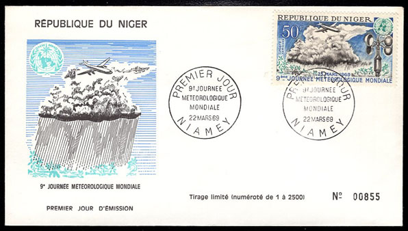 NIGER (1969) Storm clouds*. Anemometer*. Unaddressed FDC with cachet and thematic cancel. Scott No C105, Yvert No PA105.