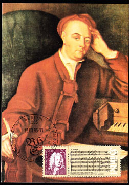 EAST GERMANY (1985) Georg Handel*. Score*. Maximum card with First Day cancel. Scott No 2463b, Yvert No BF80b.